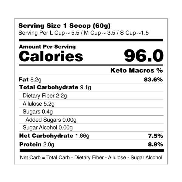 Our keto-friendly chendol ice cream features a silky coconut cream Bangkit Gula Melaka base, infused with rich gula melaka flavouring and dotted with crunchy green chendol jellies. This dairy-free, sugar-free, and ultra low carb dessert reimagines the beloved chendol in an indulgent yet healthy scoop — perfect for those avoiding sugar, lactose, or high carbs.